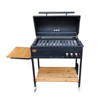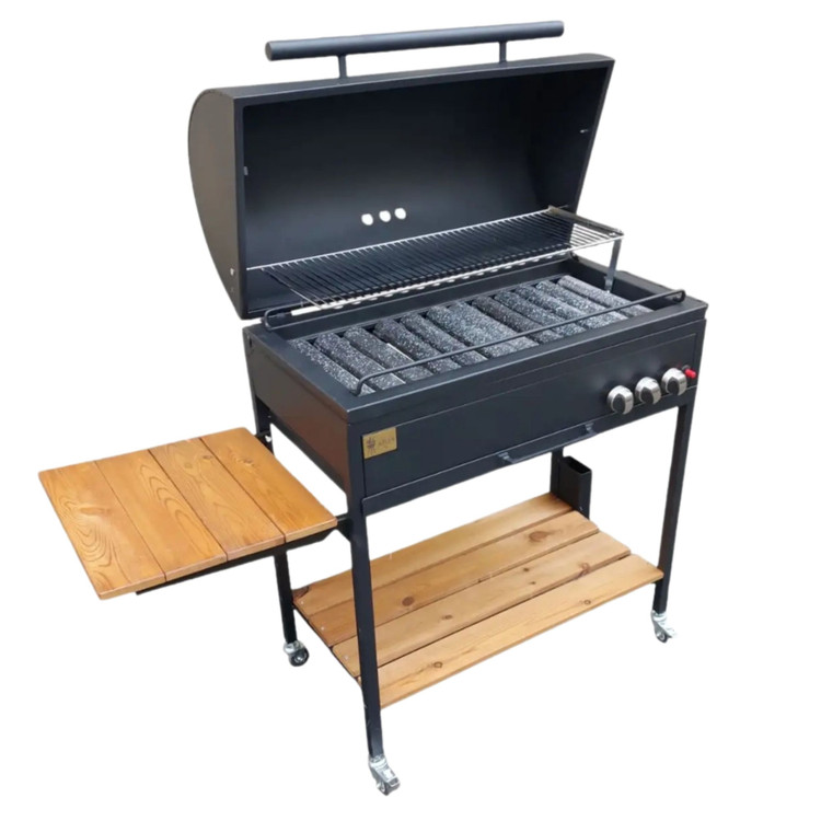 این باربیکیو با طول 80سانتی متر میتواند جهت پخت کباب در منزل و فضای باغ یا آلاچیق شما مورد استفاده قرار بگیرد. این باربیکیو به صورت پیش فرض گاز شهری بوده و به درخواست شما با تغییر ژیکلور قابلیت استفاده از گاز کپسول وجود دارد. از دیگر امکانات این محصول میتوان به دارا بودن فندک اشاره کرد که تنها با باز کردن گاز و سپس فشردن دکمه فندک آتش شعلهور میشود. یکی از معضلات هنگام کباب کردن به همریختگی اطراف کباب پز بوده که به دلیل وجود میز تاشو ترمو وود کنار آن و قفسه موجود در قسمت پایه که فضای مناسبی را برای جایگیری وسایل محیا کرده است دیگر شاهد آن نیستیم. ضمن این که استفاده از رنگ الکترواستاتیک باعث شده که محصول زیبایی زیادی داشته باشد.