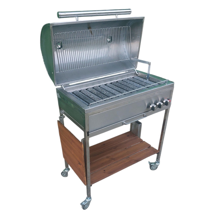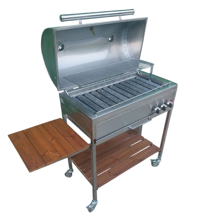 این باربیکیو دارای12مشعل در قسمت کباب پز است. روی هر یک از مشعل ها یک عدد ناودانی از جنس چدن قرار داده شده که به پخش ملایم حرارت کمک می کند. چدن می تواند حرارت را در خود نگه دارد. این ویژگی به پخت یکنواخت غذا کمک کرده و از سوختن بافت سطحی گوشت جلوگیری می کند. به کمک این طراحی روند پخت انواع گوشت به طور کامل انجام می شود. سه ولوم soft touchچرخشی تنظیم دما بی نهایت متغیر،3ولوم soft touchچرخشی تنظیم دما بی نهایت متغیر،به همراه ترمومتر عقربه ای نتیجه کباب کردن را مطابق میل شما تنظیم می کند.