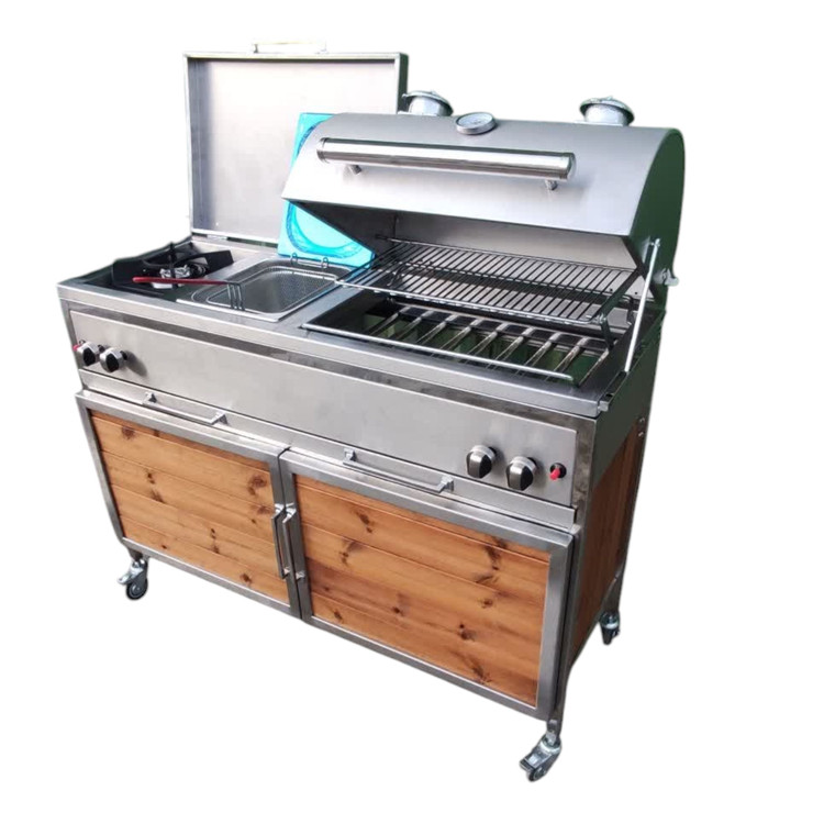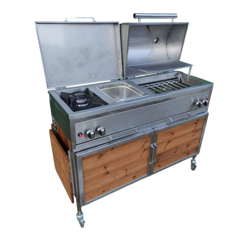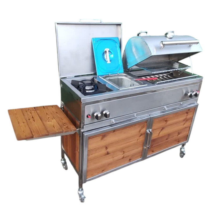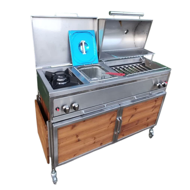 این باربیکیو با طول120سانتی متر که شامل سرخ کن و پلوپز می باشد میتواند جهت پخت کباب در منزل و فضای باغ یا آلاچیق شما مورد استفاده قرار بگیرد.