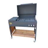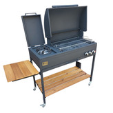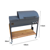 قابلیت حمل و نقل آسان باربیکیو M100P دو درب باربیکیو گازی مدل M100P دو درب کاملاً قابل حمل است. قسمت پایه به چهار عدد چرخ مجهز شده است که حمل و جابجایی آن را آسان تر می کند. پخت یکنواخت و کامل کباب در باربیکیو M100P دو درب این باربیکیو دارای 10مشعل در قسمت کباب پز است. روی هر یک از مشعل ها یک عدد ناودانی از جنس چدن قرار داده شده که به پخش ملایم حرارت کمک می کند. چدن می تواند حرارت را در خود نگه دارد. این ویژگی به پخت یکنواخت غذا کمک کرده و از سوختن بافت سطحی گوشت جلوگیری می کند. به کمک این طراحی روند پخت انواع گوشت به طور کامل انجام می شود. سه ولوم soft touchچرخشی تنظیم دما بی نهایت متغیر،نتیجه کباب کردن را مطابق میل شما تنظیم می کند. این باربیکیو با طول 100سانتی متر که شامل پلوپز می باشد میتواند جهت پخت کباب در منزل و فضای باغ یا آلاچیق شما مورد استفاده قرار بگیرد همچنین با توجه به دارا بودن پلوپز نیازی به استفاده از اجاق های اضافی دیگر ندارید. این باربیکیو به صورت پیش فرض گاز شهری بوده و به درخواست شما با تغییر ژیکلور قابلیت استفاده از گاز کپسول وجود دارد. از دیگر امکانات این محصول میتوان به دارا بودن فندک اشاره کرد که تنها با باز کردن گاز و سپس فشردن دکمه فندک آتش شعلهور میشود. طراحی زیبا، یکی از معضلات هنگام کباب کردن به همریختگی اطراف کباب پز بوده که به دلیل وجود میز تاشو کنار آن و همچنین قفسه تعبیه شده در قسمت پایه که فضای مناسبی را برای جایگیری وسایل محیا کرده است دیگر شاهد آن نیستیم. ضمن این که استفاده از رنگ الکترواستاتیک باعث شده که محصول زیبایی زیادی داشته باشد. نظافت سریع و آسان، سینی بزرگ چکه گیر جهت جمع آوری روغن ریخته شده با قابلیت جدا شدن به منظور تمیز کردن راحت و آسان در این محصول تعبیه شده است.