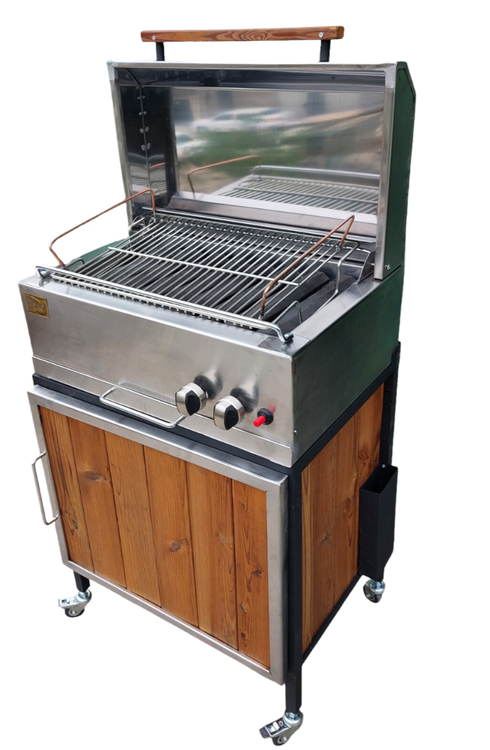 بدنه این محصول از استیل ساخته شده و در برابر خوردگی، نفوذ رطوبت مقاوم است. در قسمت زیر باربیکیو یک کابینت از جنس چوب طراحی شده که می توان از آن برای قرار دادن لوازم مختلف استفاده کرد.