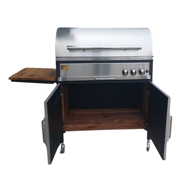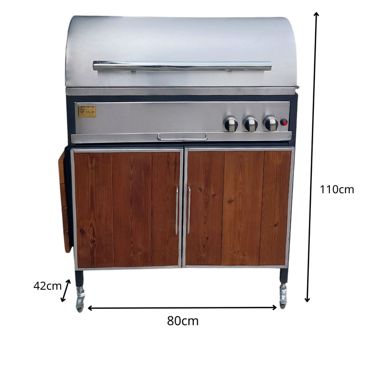 باربیکیو گازی اصلان مدل E80 استیل درب گرد کابینت دار