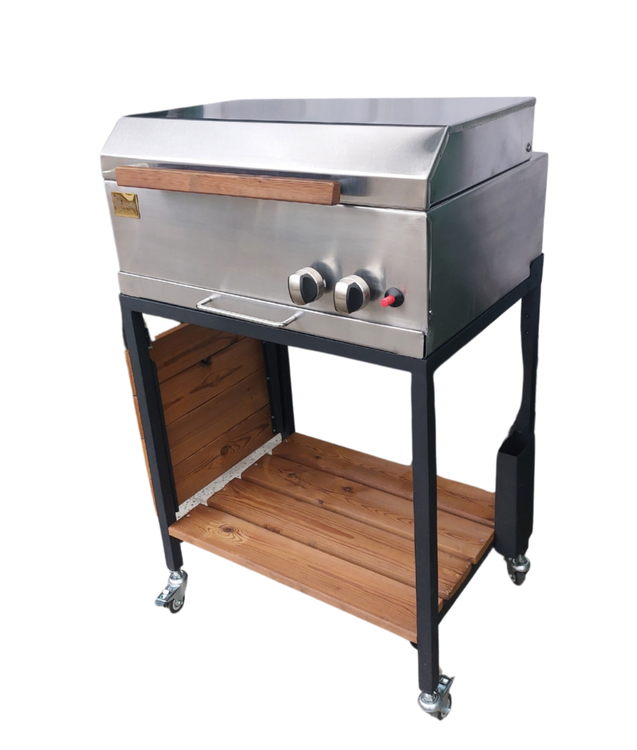 باربیکیو گازی مدل E60 استیل درب تخت کاملاً قابل حمل است. قسمت پایه از باربیکیو جدا شده و قرار دادن آن در خودروی شخصی به راحتی صورت می گیرد. همچنین قسمت پایه به چهار عدد چرخ مجهز شده است که حمل و جابجایی آن را آسان تر می کند.