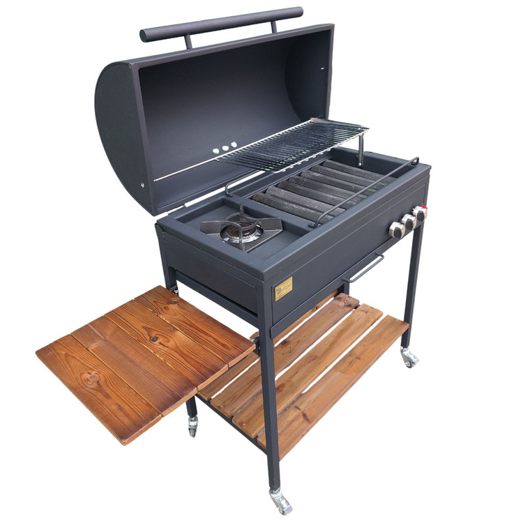 این باربیکیو دارای 9مشعل در قسمت کباب پز است. روی هر یک از مشعل ها یک عدد ناودانی از جنس چدن قرار داده شده که به پخش ملایم حرارت کمک می کند. چدن می تواند حرارت را در خود نگه دارد. این ویژگی به پخت یکنواخت غذا کمک کرده و از سوختن بافت سطحی گوشت جلوگیری می کند. به کمک این طراحی روند پخت انواع گوشت به طور کامل انجام می شود.