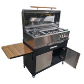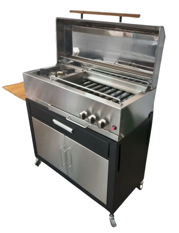 جنس باربیکیو استیل می باشد. در قسمت زیر باربیکیو یک کابینت ترکیبی از استیل و فولاد می باشد که می توان از آن برای قرار دادن لوازم مختلف استفاده کرد.