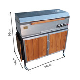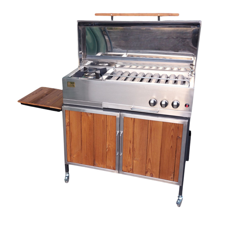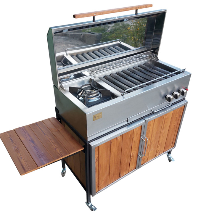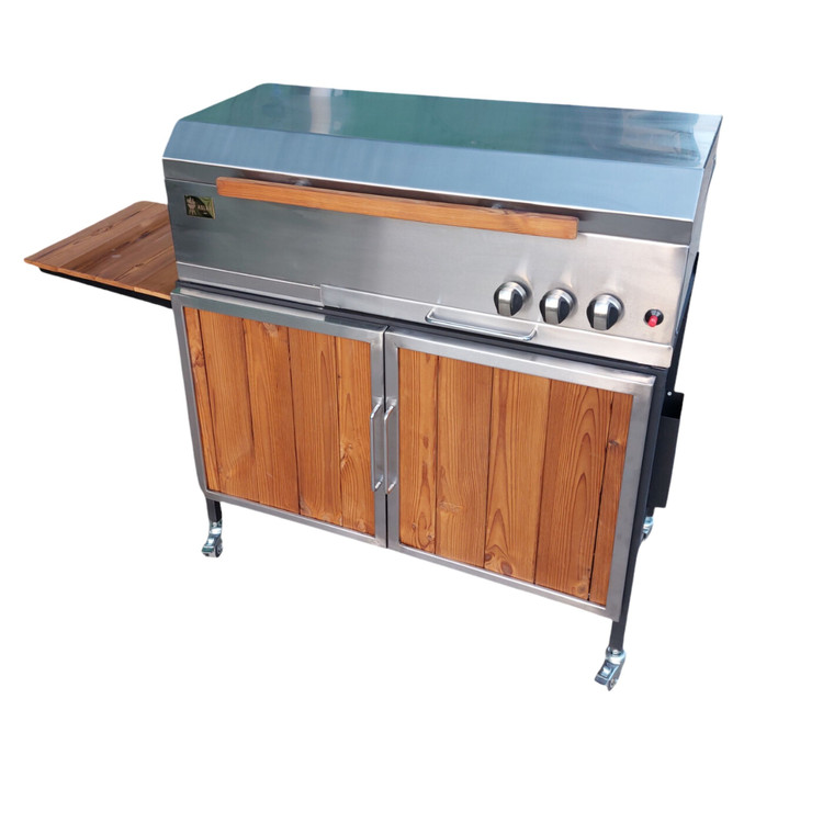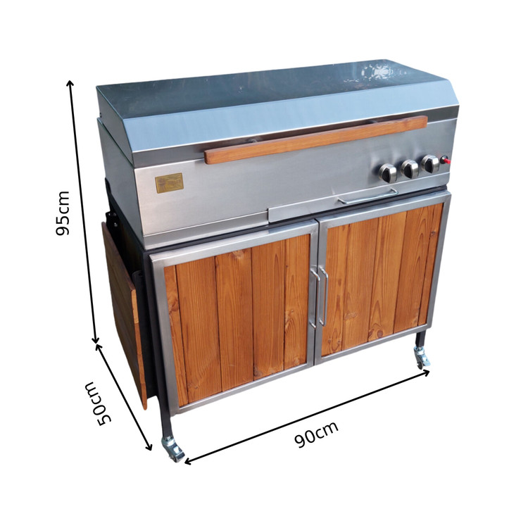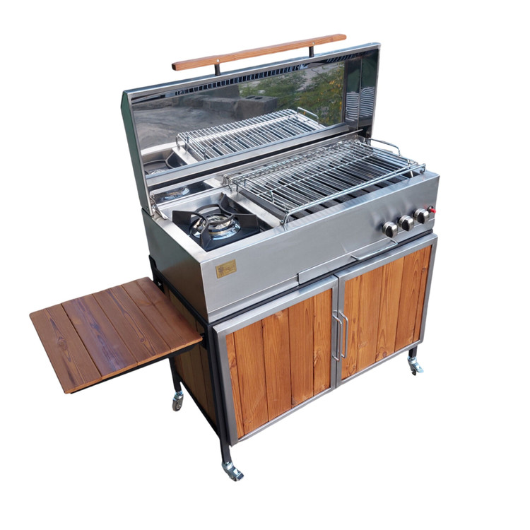 بدنه این محصول از استیل ساخته شده است. در قسمت پایه باربیکیو یک کابینت از جنس چوب ترمو وود طراحی شده که می توان از آن برای قرار دادن لوازم مختلف استفاده کرد.