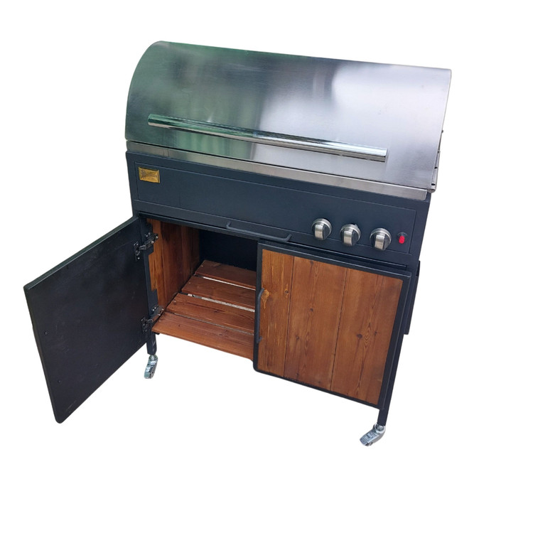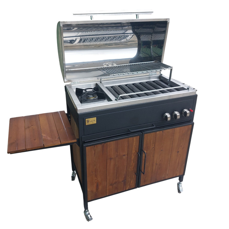 بدنه این محصول از استیل و فولاد ساخته شده است. در قسمت زیر باربیکیو یک کابینت از جنس چوب طراحی شده که می توان از آن برای قرار دادن لوازم مختلف استفاده کرد.