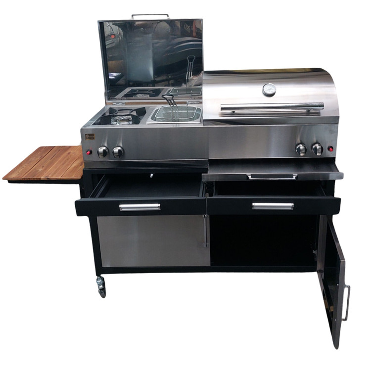 این باربیکیو به بن ماری سرخ کن به همراه توری سرخ کن و پلوپز مجهز شده تا روند پخت را از هر نظر کامل و شما را از اجاق های اضافی دیگر بی نیاز کند.