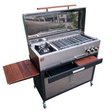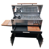 باربیکیو از جنس استیل می باشد. در قسمت زیر باربیکیو یک کابینت ترکیبی از استیل و فولاد طراحی شده که می توان از آن برای قرار دادن لوازم مختلف استفاده کرد،افزون بر این کشو مگنت تعبیه شده فضای مناسبی برای قرارگیری وسایل مختلف فراهم کرده است.