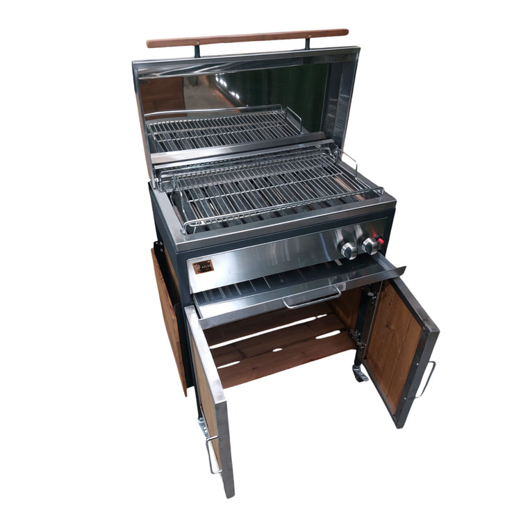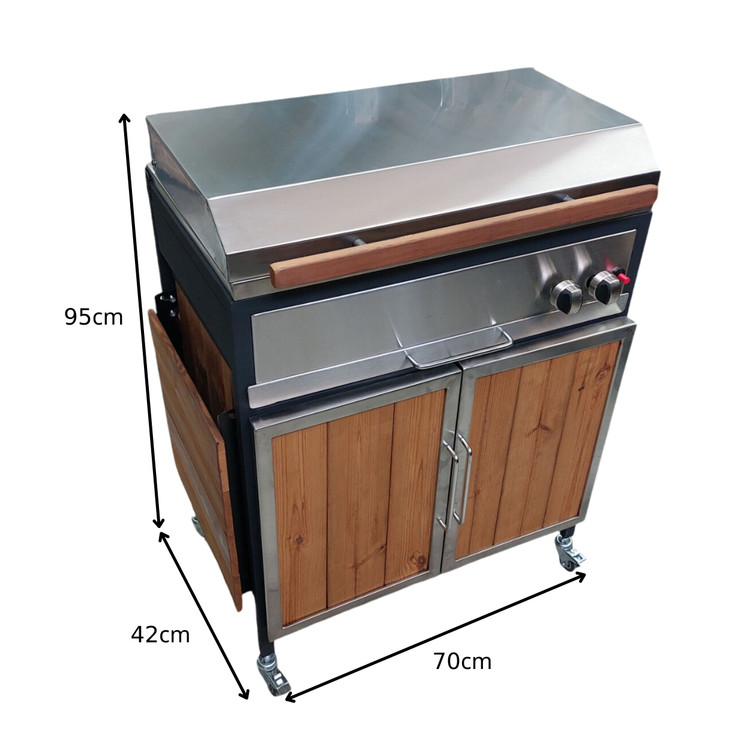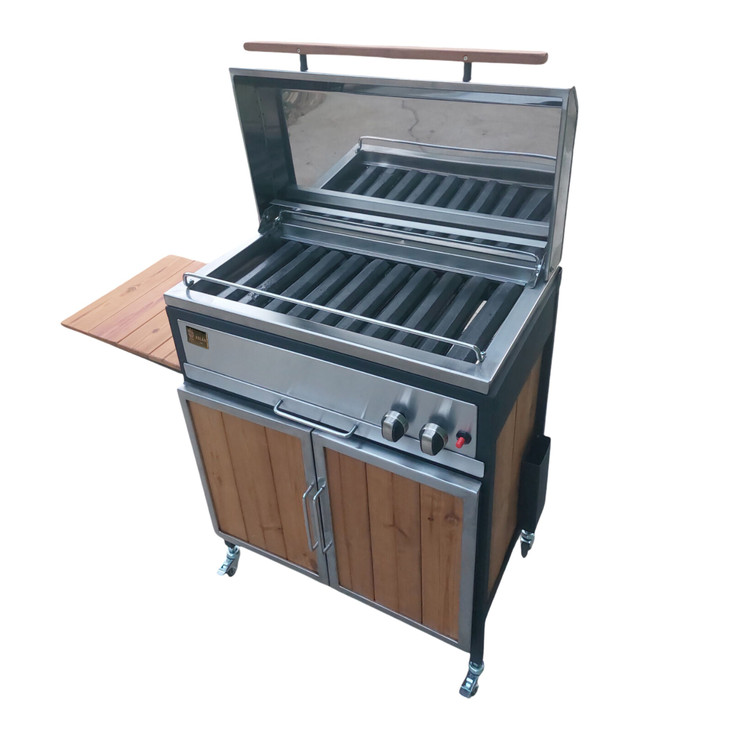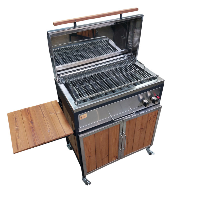 بدنه این محصول از استیل ساخته شده است. در قسمت زیر باربیکیو یک کابینت از جنس چوب ترمو وود طراحی شده که می توان از آن برای قرار دادن لوازم مختلف استفاده کرد.